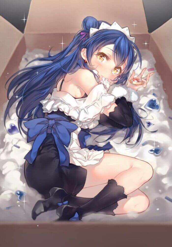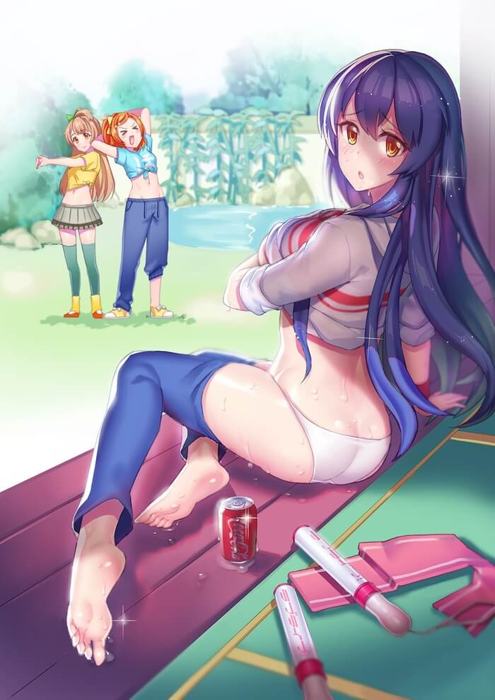 今回は「ラブライブ!」に登場する園田海未(そのだうみ)のエロ画像を紹介します。園田海未はμ’s(ミューズ)の一員で黒(藍色)髪のロングヘアーがかわいいJKです。アイドルになる前は剣道部に所属していました。個人的には園田海未が履いている黒色ハイソックスの足裏部分の匂いを想像するだけで15リットルは射精可能です。そんな、ソシャゲやアニメで大人気の「ラブライブ!」に登場する園田海未のエロ画像をご覧ください。